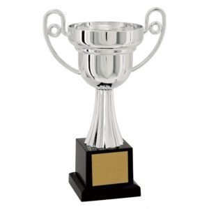 Taça em metal prateada com 60cm de altura. Disponível nas cores ouro e prata.