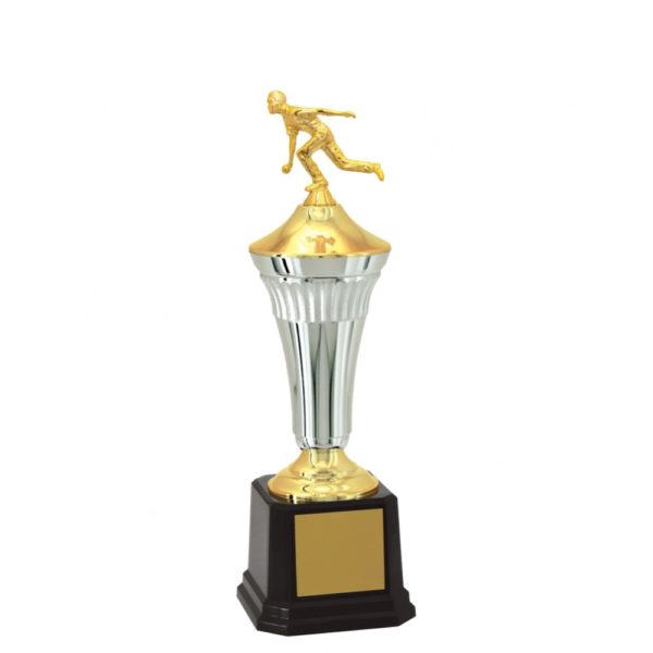 Troféu com 47 cm de altura, com base oitavada com 12,1 cm de largura em polímero na cor preta. Duas tampas em polímero metalizado na cor dourada, intercalado por um cone em polímero com detalhes na parte superior metalizado na cor prata. Estatueta intercambiável de Bocha.