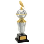 Troféu com altura de 49 cm, base quadrada com 11 cm de largura em polímero na cor preta. Sobre esta base um cone com detalhes em polímero metalizado na cor prata com uma tampa metalizada na cor dourada. Sobre esta tampa uma bola lapidada em polímero metalizada na cor prata intercalada por um anel em polímero metalizado na cor dourada. Estatueta superior intercambiável de Canário. Acompanha gravação personalizável em adesivo.