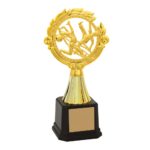 Troféu com altura de 24 cm, com base octogonal com 7,8 cm de largura em polímero na cor preta. Cone com frisos em polímero metalizado na cor dourada. Estatueta intercambiável de Ramo com Capoeira. Acompanha gravação personalizável em adesivo.