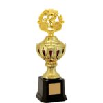 Troféu com 36 cm de altura, com base com 10,1 cm de largura em polímero na cor preto. Na parte superior desta base um cone em polímero metalizado na cor dourado e sobre este cone uma coroa em polímero com 12 pontas com 11 cm de largura metalizada na cor dourada, com uma copa interna em polímero metalizada na cor vermelha e uma tampa em polímero metalizada na cor dourado. Estatueta intercambiável de Ramo com Ciclismo / Bike. Demais componentes metalizados na cor dourado.