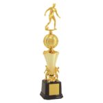 Troféu com 97 cm de altura, com base octogonal com 21 cm de largura em polímero na cor preta. Sobre esta base um suporte em polímero metalizado na cor dourada, cone em polímero com frisos metalizado na cor dourado acetinado, tampa em polímero metalizada na cor dourada. Sobre esta tampa uma bola em polímero metalizada na cor dourada intercalada por um anel em polímero metalizada na cor dourada. Na base quatro estatuetas fixas de jogadores de futebol. Estatueta intercambiável.