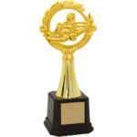 Troféu com altura de 27 cm, com base octogonal com 8,5 cm de largura em polímero na cor preta. Cone com frisos em polímero metalizado na cor dourada. Estatueta intercambiável de Ramo com Kart. Acompanha gravação personalizável em adesivo.