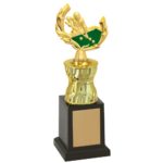 Troféu com 28 cm de altura, com base quadrada com 7,5 cm de largura em polímero na cor preta. Sobre esta base dois suportes em polímero metalizados na cor dourada, com a largura de 5,5 cm. Estatueta superior intercambiável de Ramo com Sinuca / Snooker.