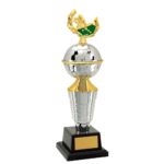 Troféu com altura de 44 cm, base quadrada com 11 cm de largura em polímero na cor preta. Sobre esta base um cone com detalhes em polímero metalizado na cor prata com uma tampa metalizada na cor dourada. Sobre esta tampa uma bola lapidada em polímero metalizada na cor prata intercalada por um anel em polímero metalizado na cor dourada. Estatueta superior intercambiável de Ramo com Snooker/Sinuca. Acompanha gravação personalizável em adesivo.