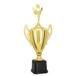 Troféu com a altura de 64 cm. Estatueta superior intercambiável. Este troféu pode ser feito com a taça em polímero metalizado nas cores dourada ou prateada.
