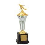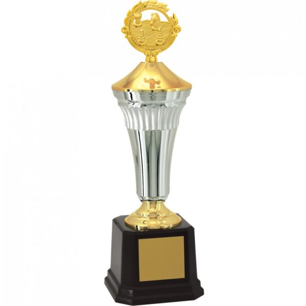 Troféu com 53 cm de altura, com base oitavada com 13,1 cm de largura em polímero na cor preta. Duas tampas em polímero metalizado na cor dourada, intercalado por um cone em polímero com detalhes na parte superior metalizado na cor prata. Estatueta intercambiável de Ramo com Xadrez.