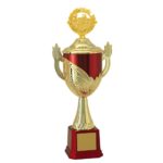 Troféu com 57 cm de altura, com base oitavada com 12,1 cm de largura em polímero metalizada na cor vermelho acetinada. Cone com detalhe na parte inferior em polímero metalizado na cor dourada e sobre este cone uma taça com 21 cm de largura a partir das alças. Esta taça é composta por cesta em polímero metalizada na cor dourada e copa em polímero metalizada na cor vermelho acetinada com tampa metalizada na cor dourada. Estatueta intercambiável de Ramo com Xadrez.  Acompanha gravação personalizável em adesivo.