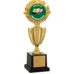 Os troféus, medalhas e placas podem ser personalizadas com adesivo ou gravação (dependendo do material).