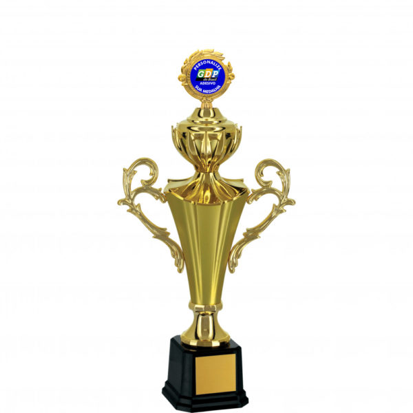 Troféu de sem esporte / genérico com 63cm. Disponível na cores azul, dourado, vermelho ou verde. Estatueta intercambiável de ramo liso para colocação de adesivo personalizável.