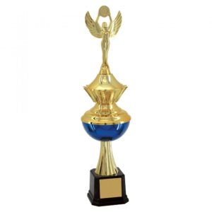 Troféu com altura de 155 cm, base redonda com 32 cm de largura e 17,50 cm de altura fabricada em polímero na cor preta. Acima desta base oito colunas compostas por cones cilíndricos adornados em alto relevo. Possui um estágio fabricado em MDF no formato redondo na cor preta. Acima dele um suporte em polímero metalizado a alto vácuo e pintado na cor dourada. Acima deste suporte uma taça em polímero metalizada a alto vácuo nas cores dourada brilhante e dourada acetinada com a medida de 60 cm de largura a partir das alças. Tampa da taça e alças em polímero metalizado na cor dourada. Uma estatueta de honra ao mérito (deusa da Vitória) fixa no centro da base. Estatueta intercambiável. Este troféu também pode vir com a taça nas cores dourado/vermelha acetinado, dourado/verde acetinada ou dourado/azul acetinado.